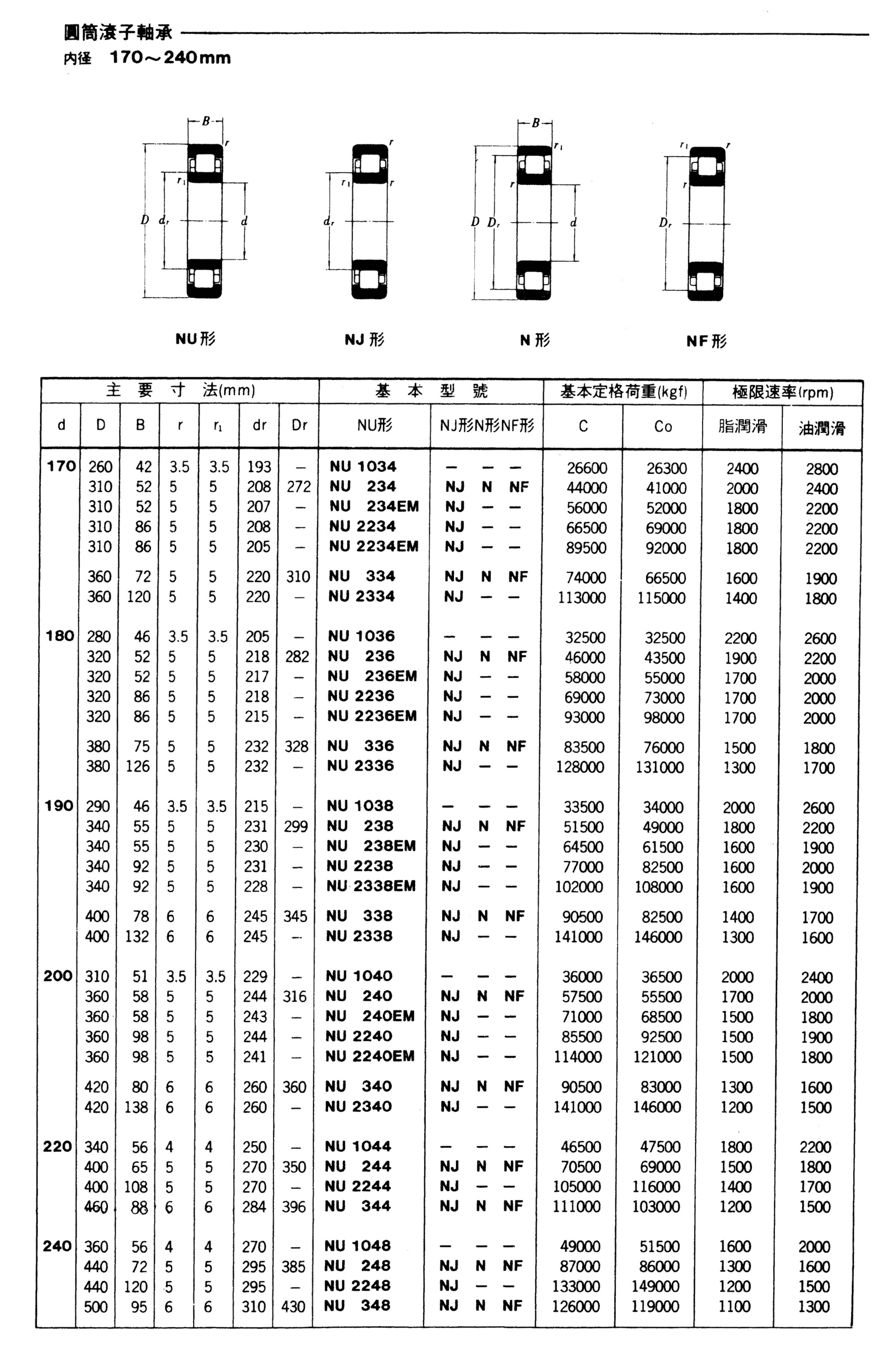 圓筒滾子軸承(內徑170-240mm)