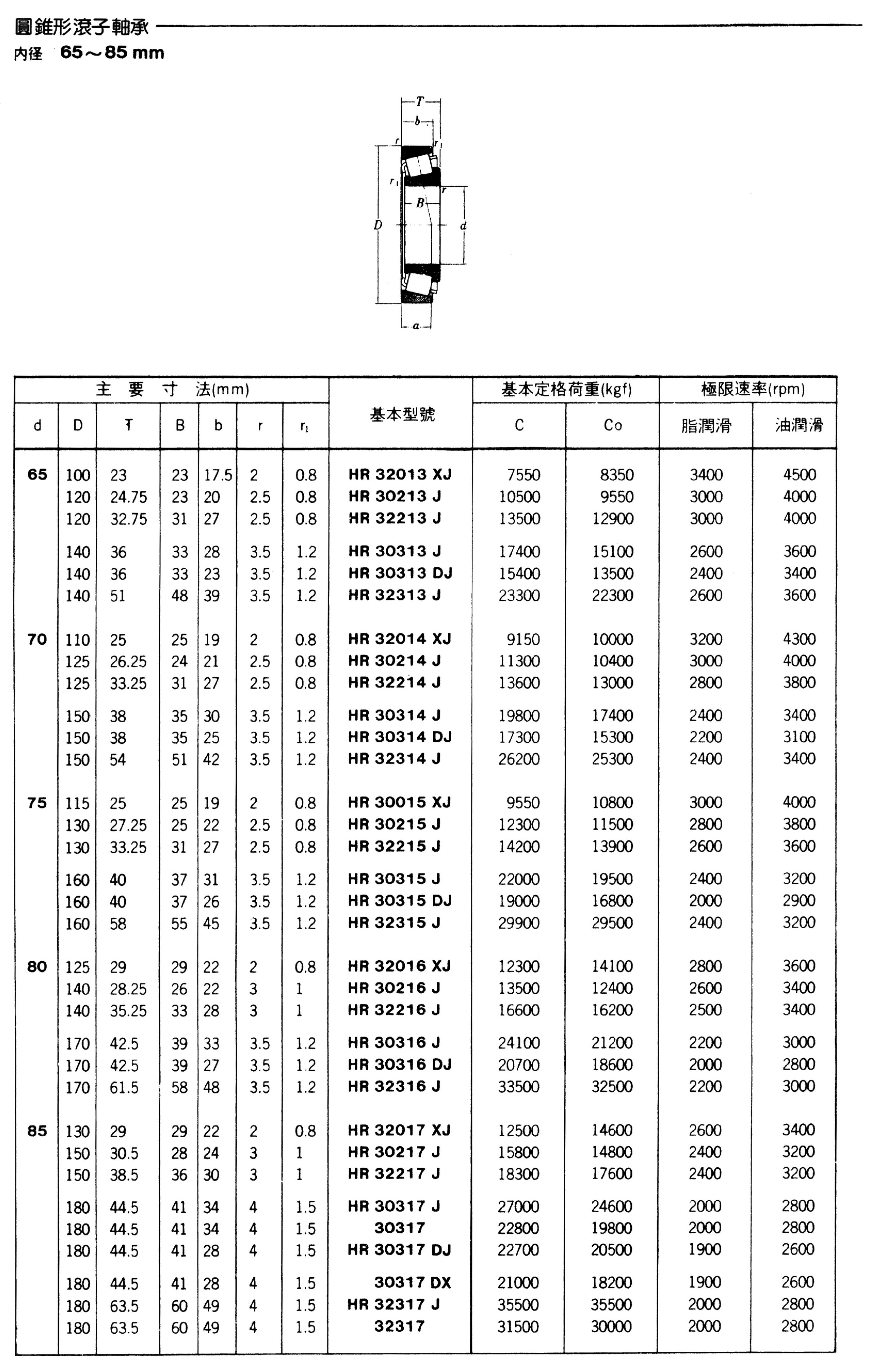 圓錐型滾子軸承(內徑65-85mm)
