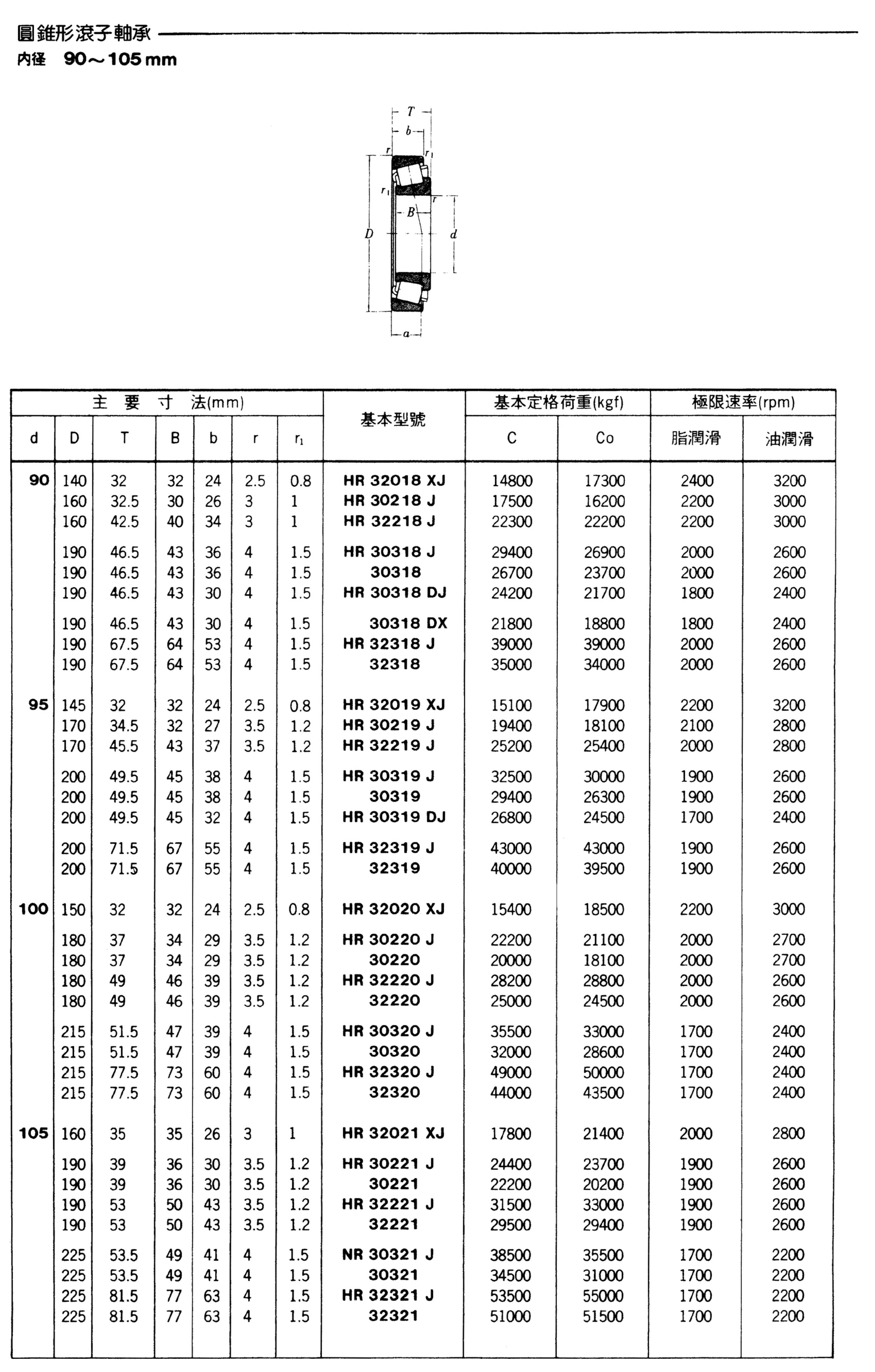 圓錐型滾子軸承(內徑90-105mm)