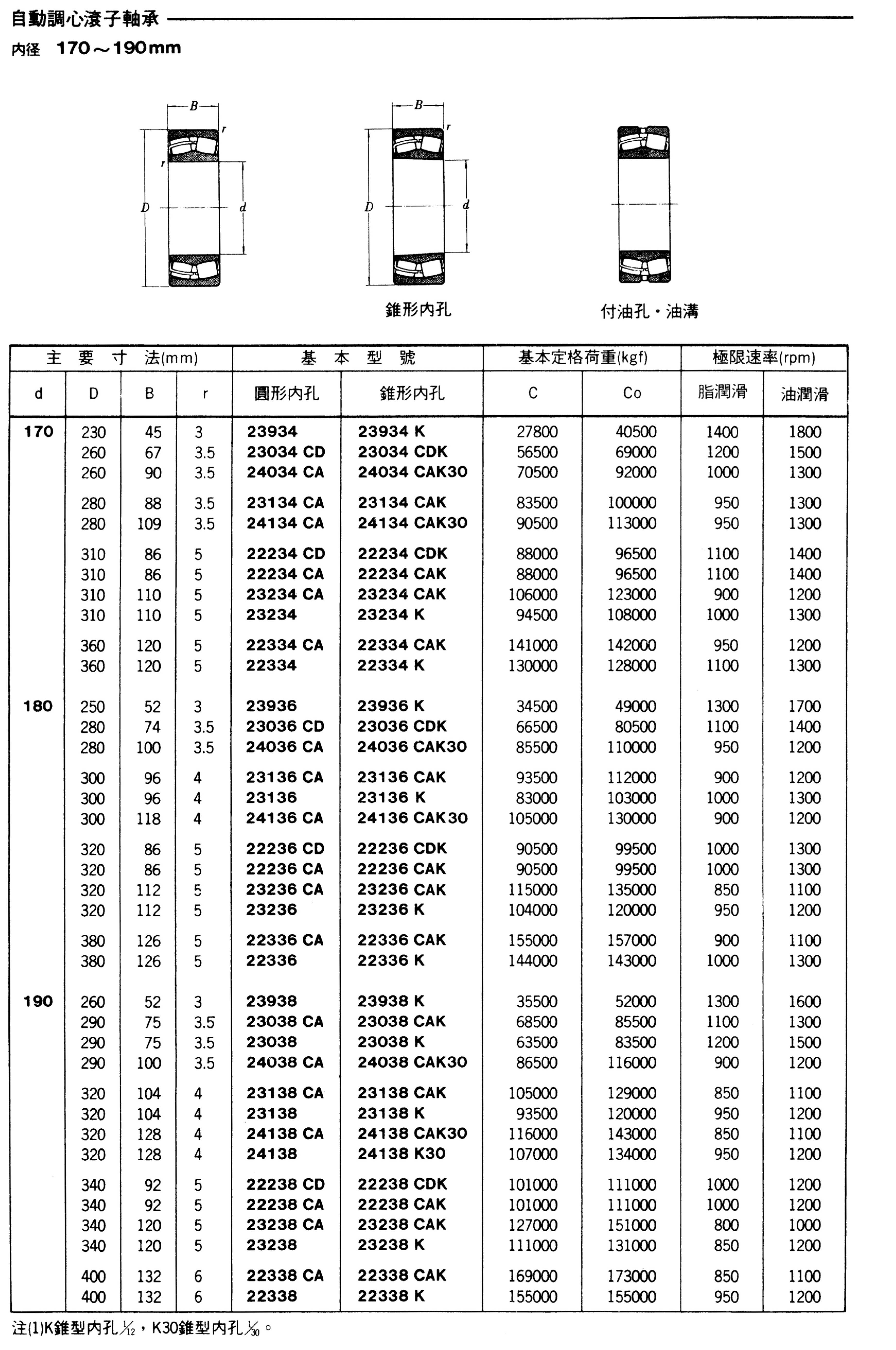 自動調心滾子軸承(內徑170-190mm)