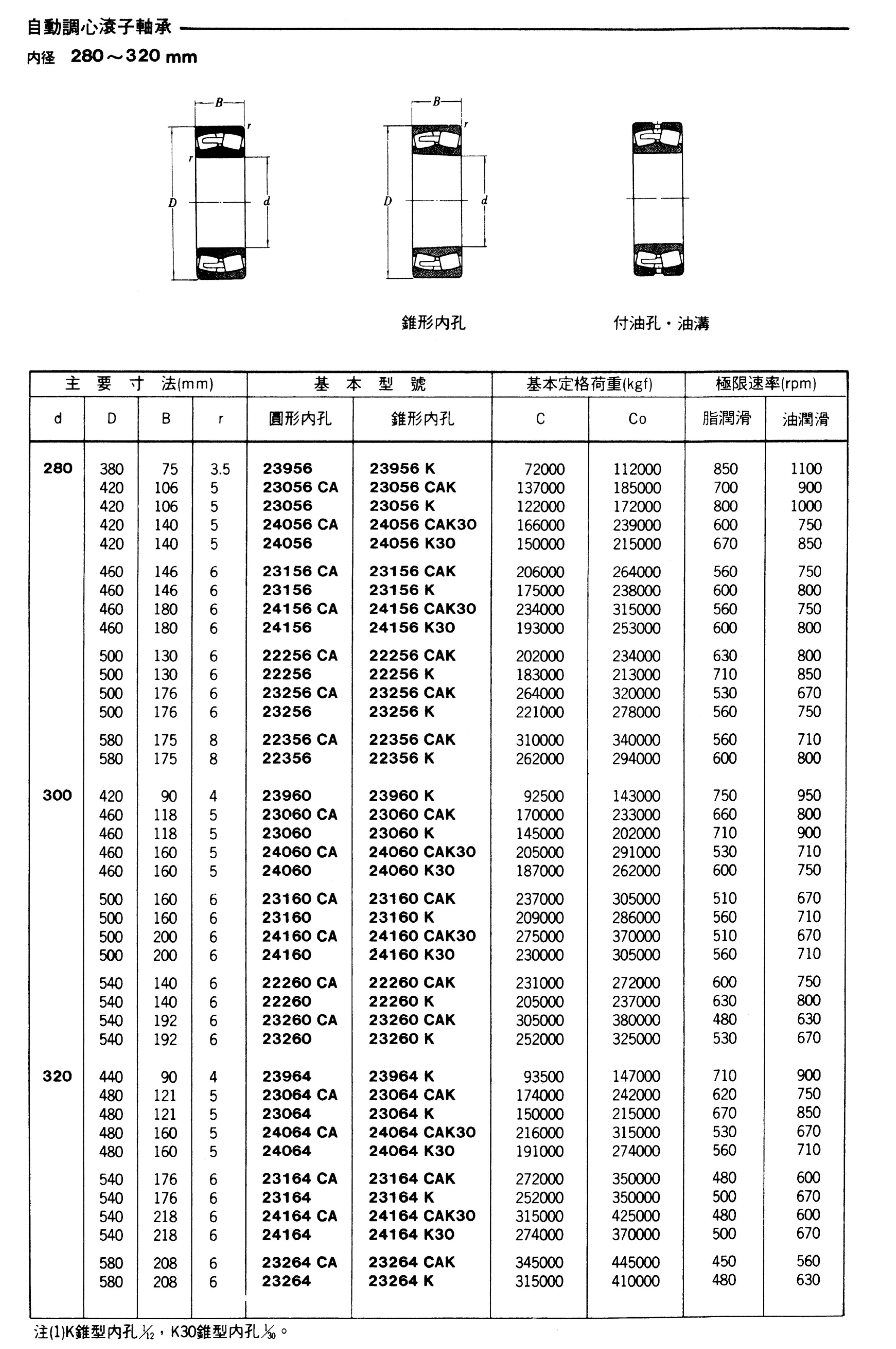 自動調心滾子軸承(內徑280-320mm)