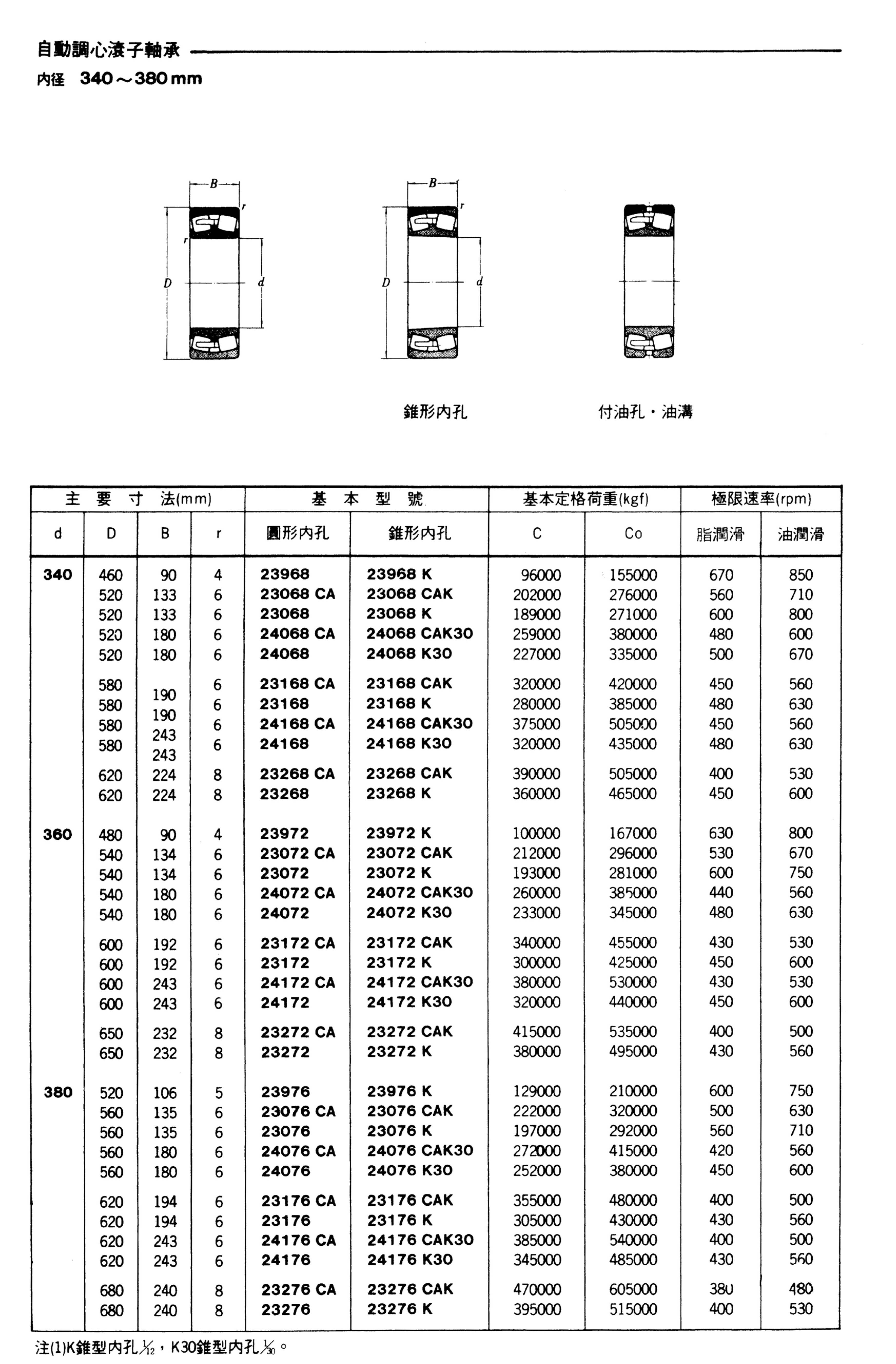 自動調心滾子軸承(內徑340-380mm)
