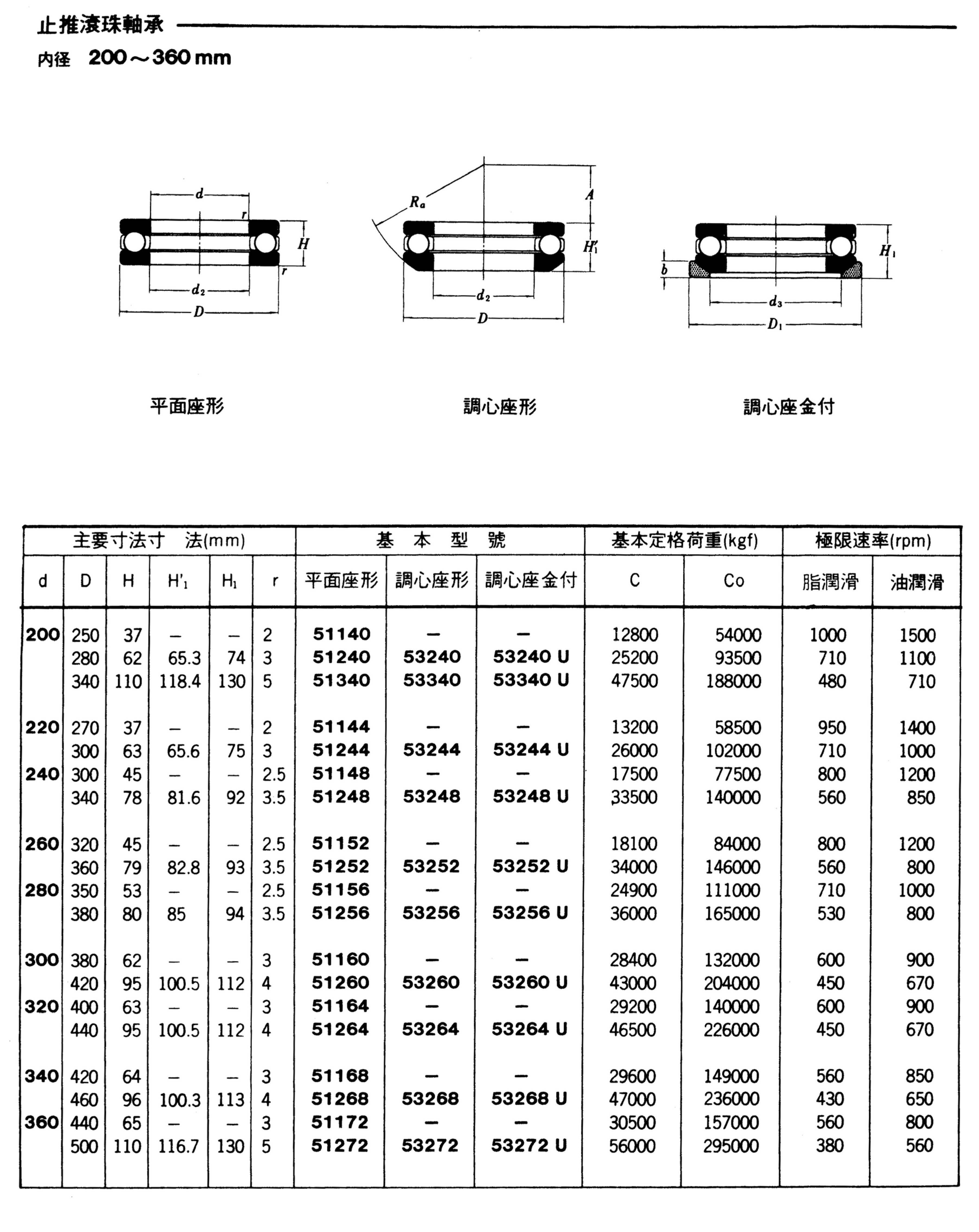 止推滾珠軸承 (內徑200-360mm)