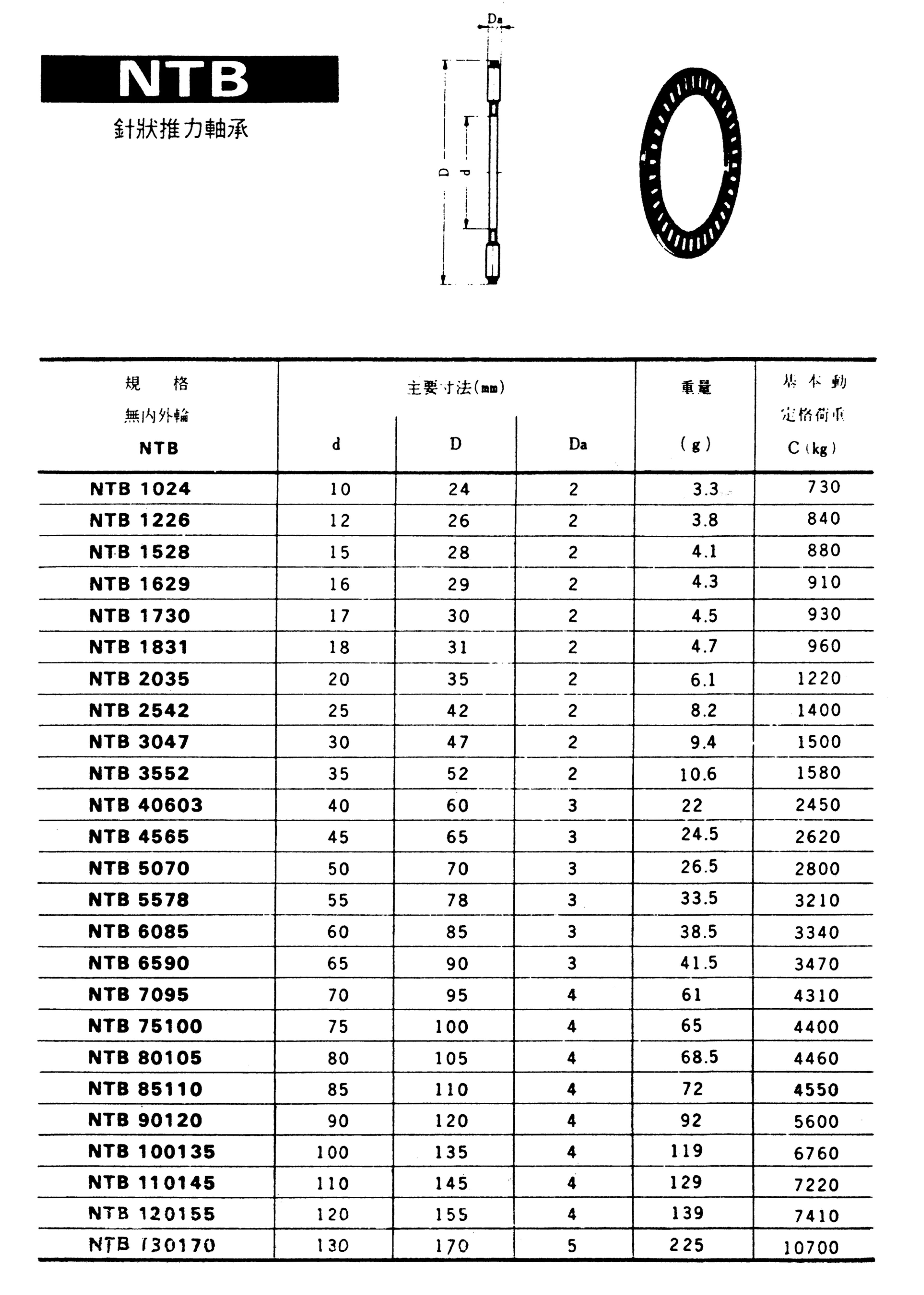 針狀推力軸承(NTB-1024-130170)