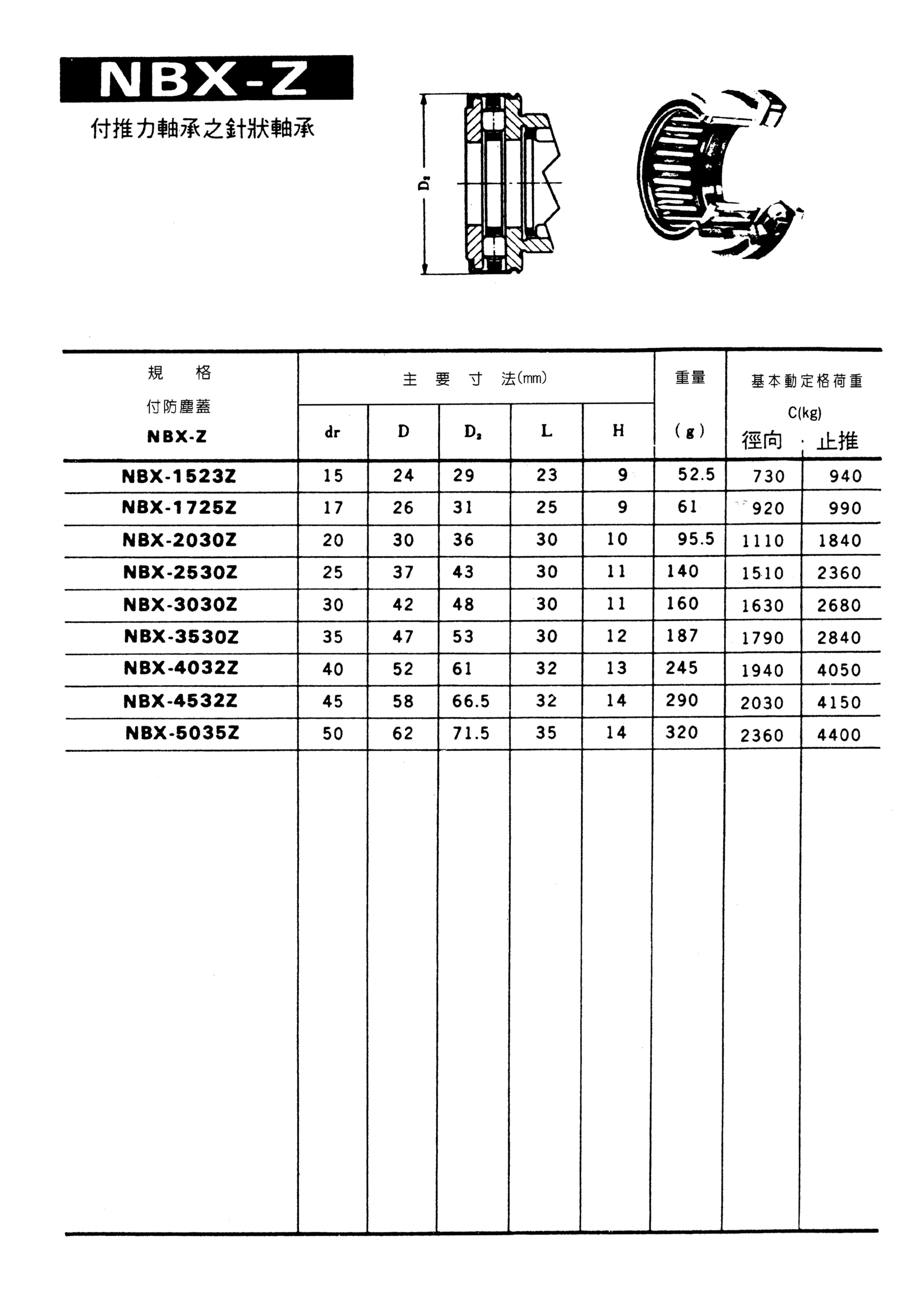 付推力軸承之針狀軸承 NBX-Z