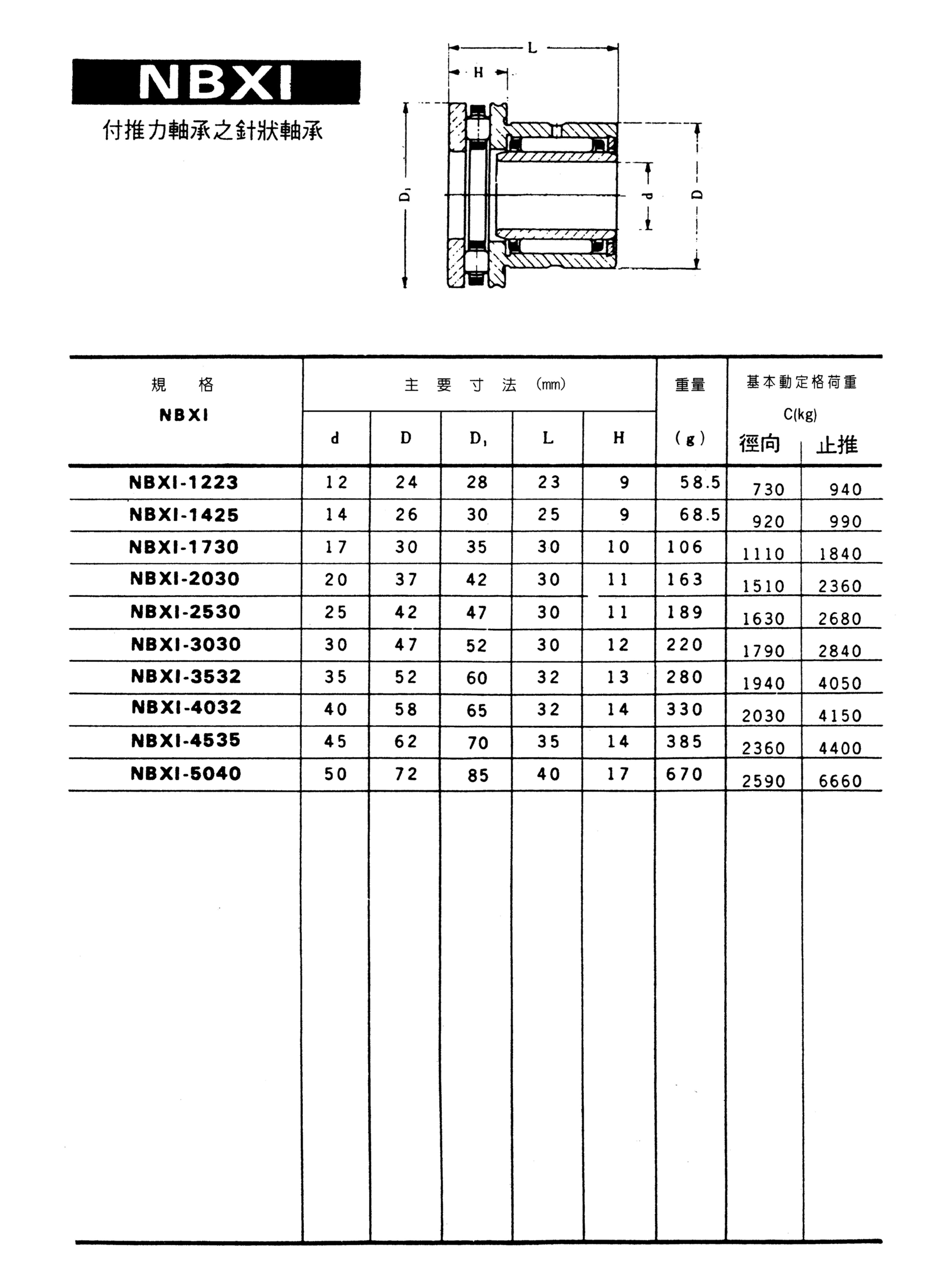 付推力軸承之針狀軸承 NBXI
