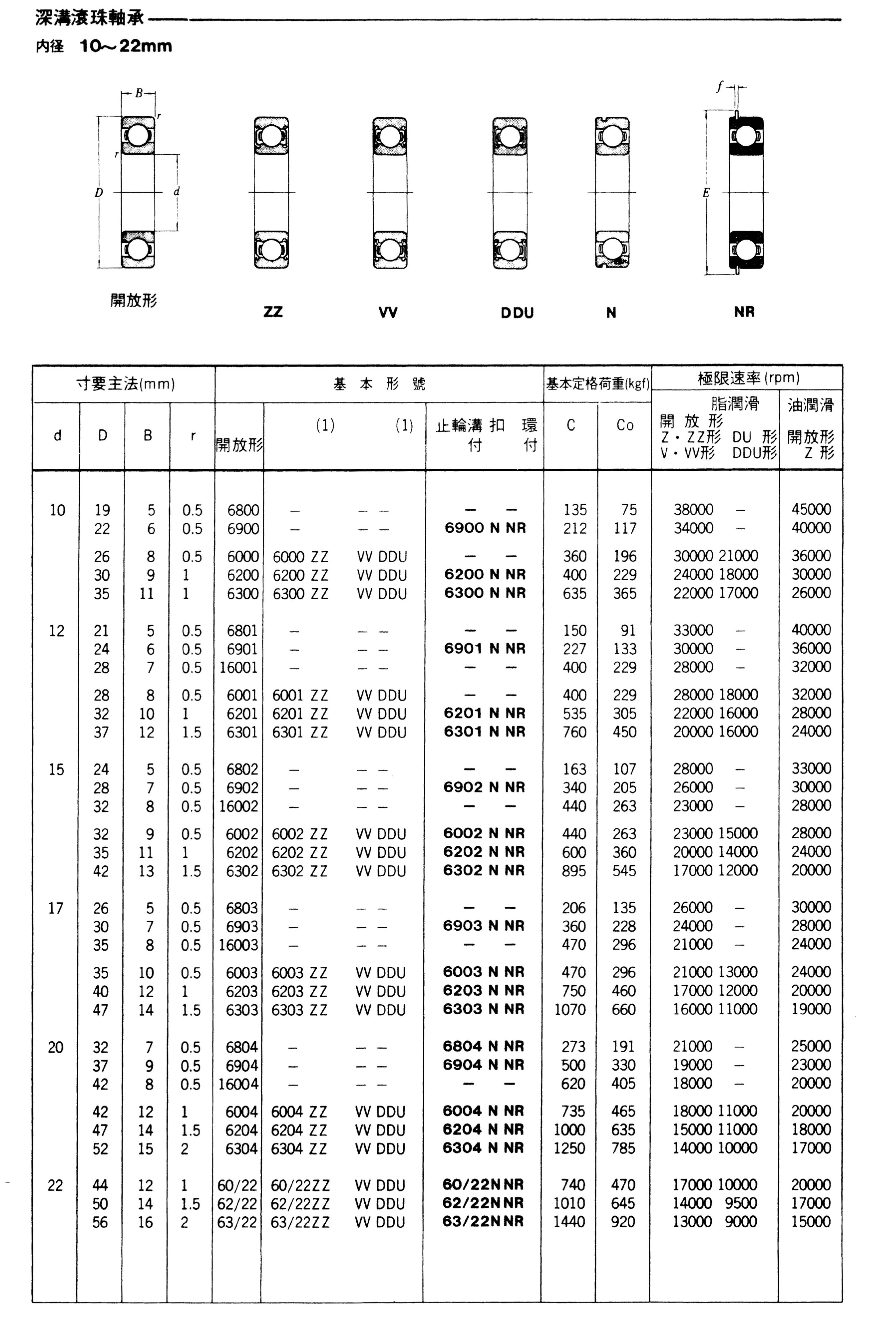 深溝軸承(內徑10~22mm)