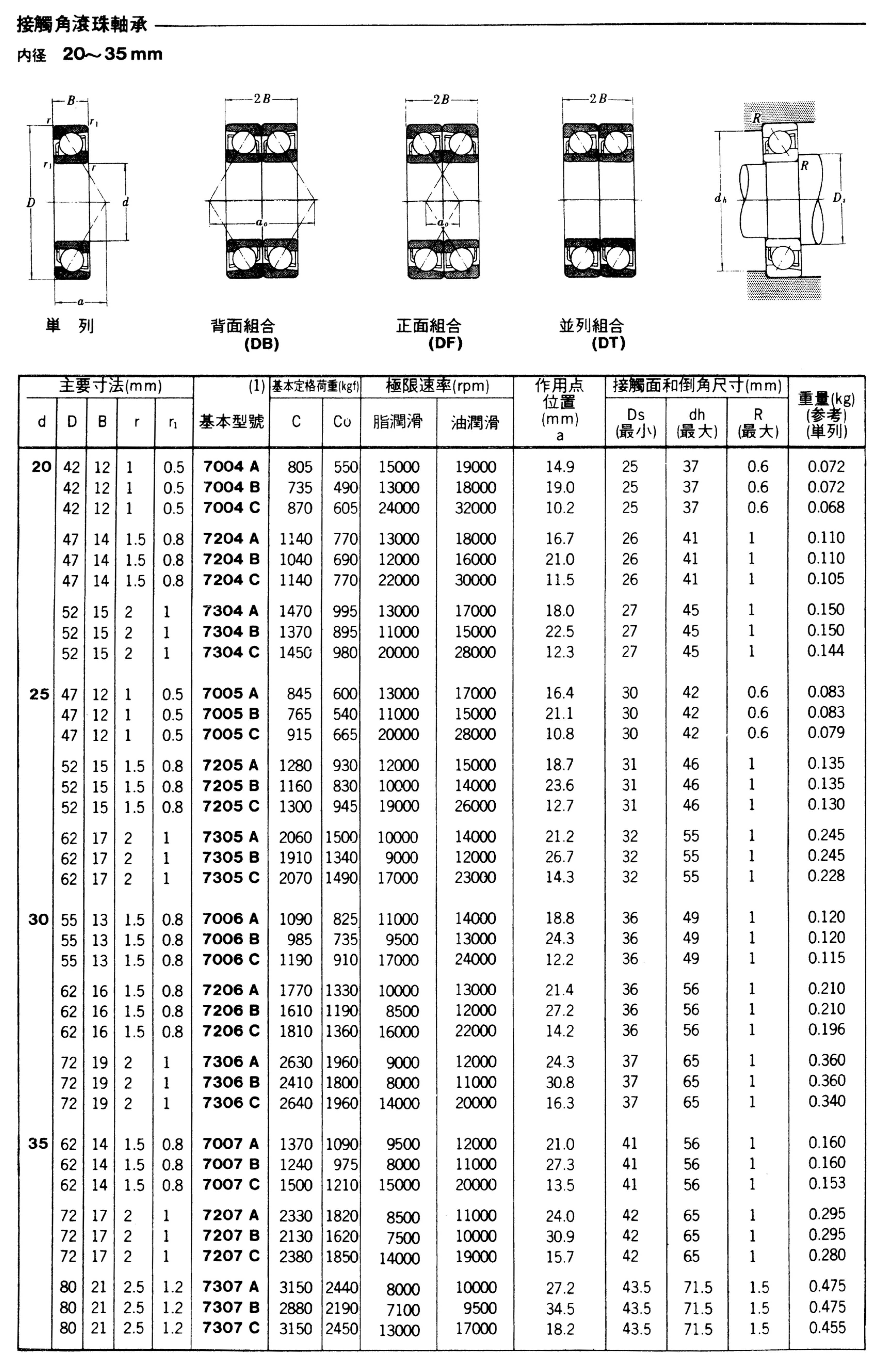 接觸角滾珠軸承(內徑20-35mm)