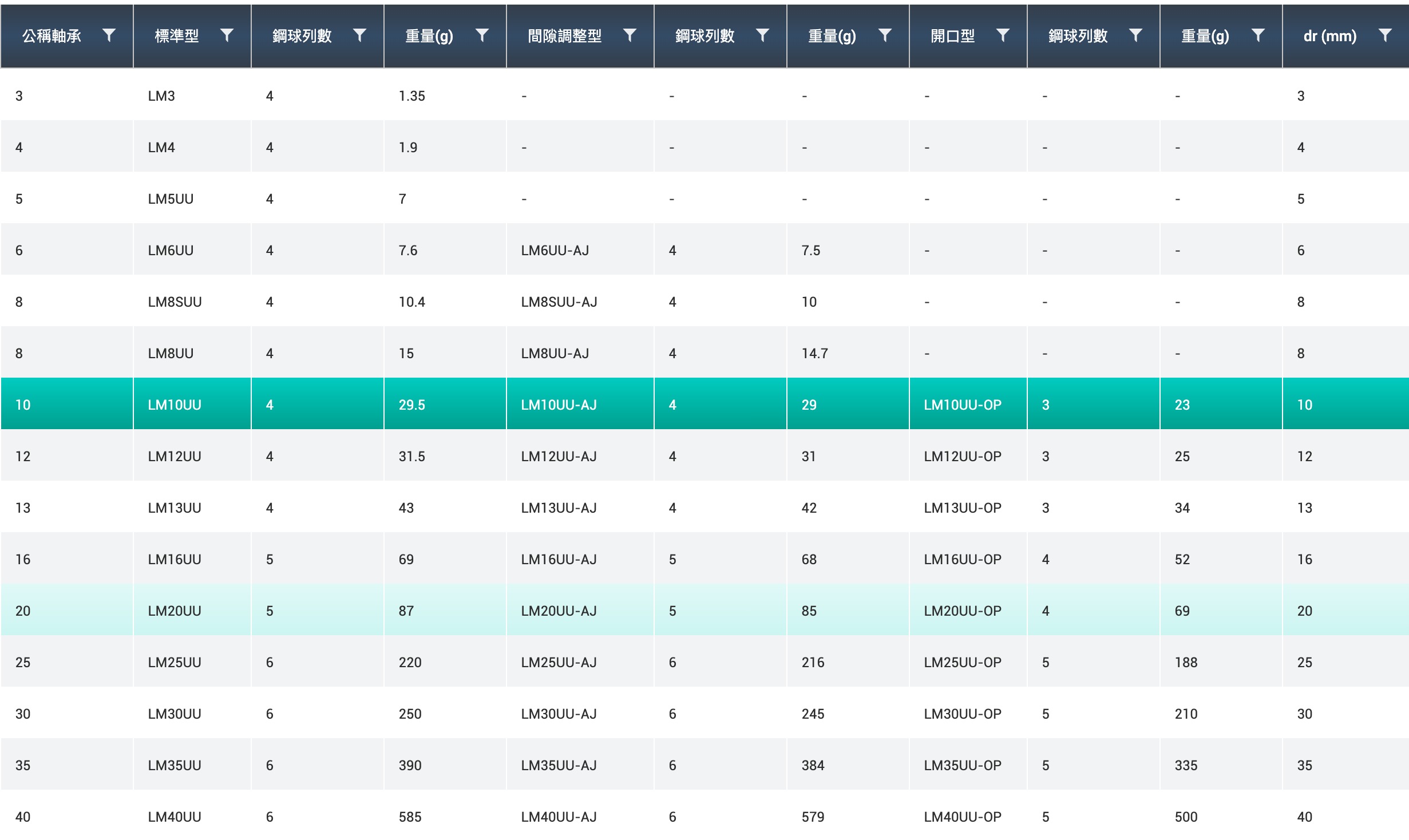 軸心.直線軸承系列