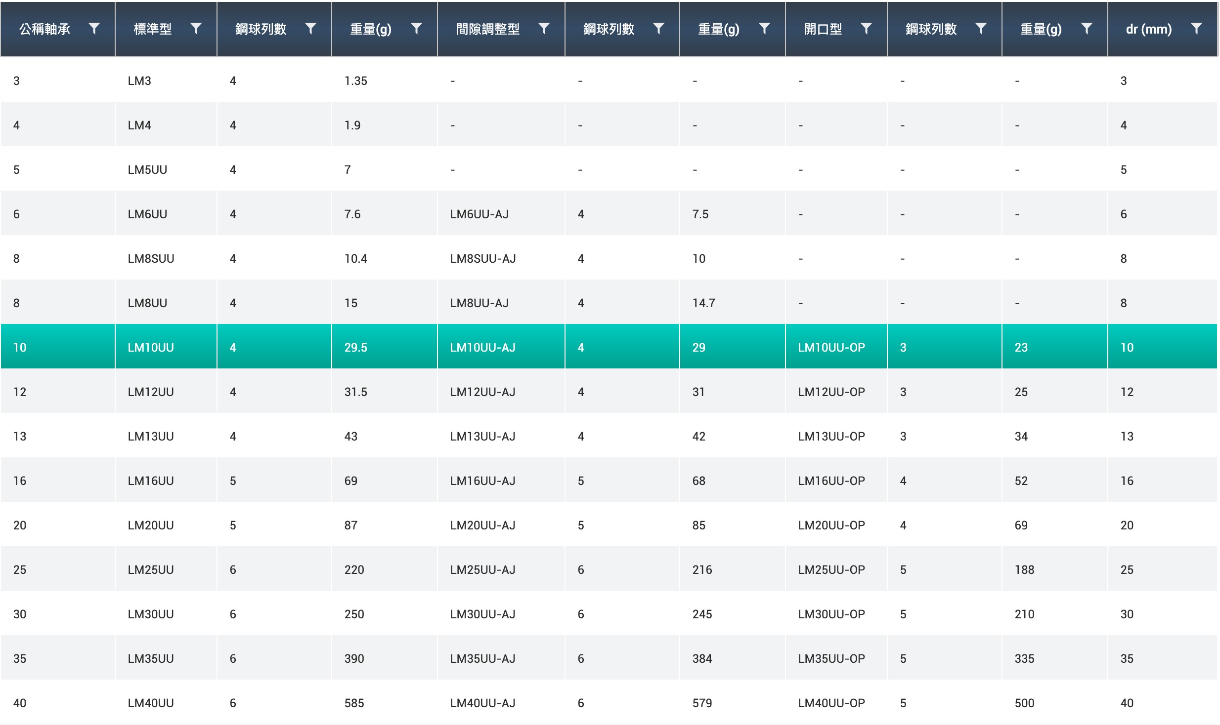 軸心.直線軸承系列
